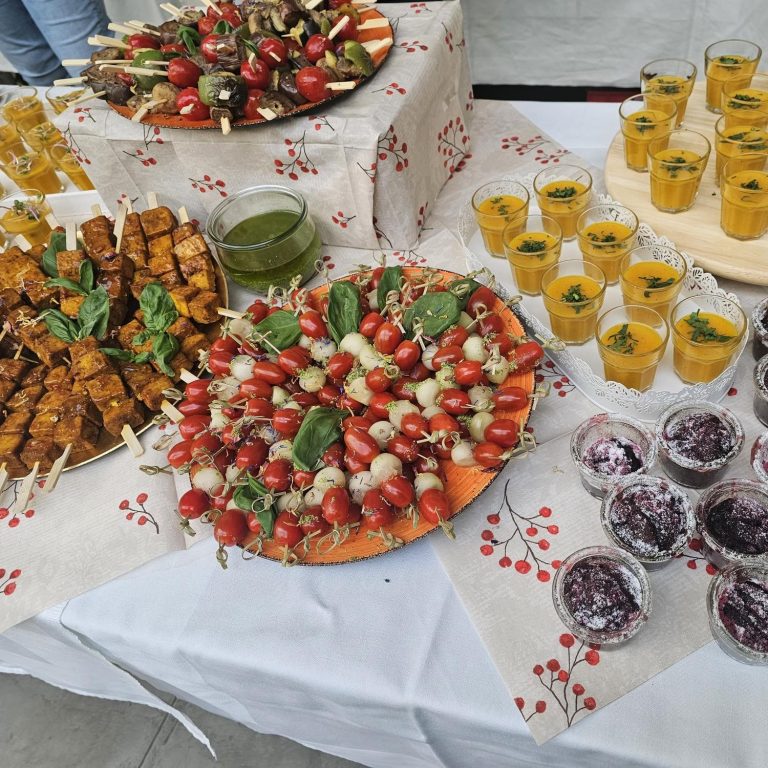 Von raffinierten veganen Häppchen über herzhafte Hauptgerichte bis hin zu verführerischen Desserts und Kuchen – wir bieten alles, was das Herz begehrt. Lassen Sie sich von unserer kreativen Auswahl inspirieren und genießen Sie ein Buffet, das sowohl geschmacklich als auch visuell überzeugt. Ihre Gäste werden begeistert sein von den vielfältigen Möglichkeiten, die wir anbieten!